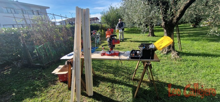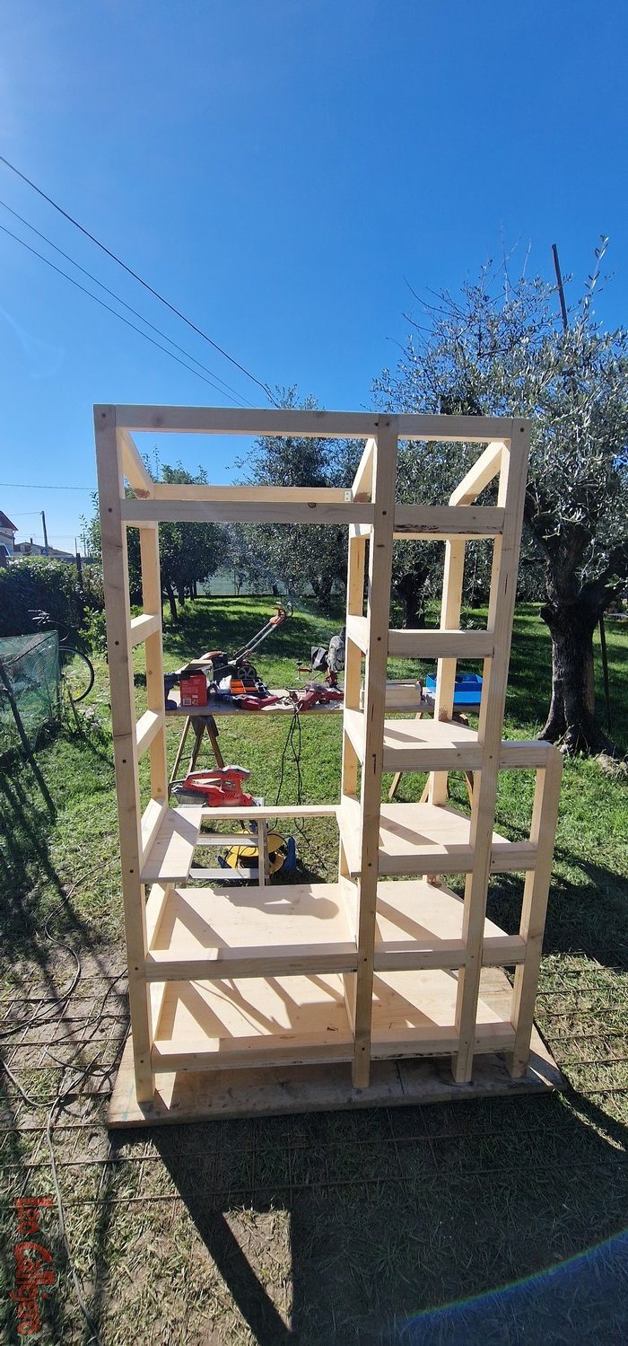 Mientras llega la fecha, dedico mis días a construir la estantería para la “stanzetta” de casa. Los trabajos los hago en Luni, en el jardín de Claudia, la madre de Giada, quien también me da de comer los días que trabajo.
